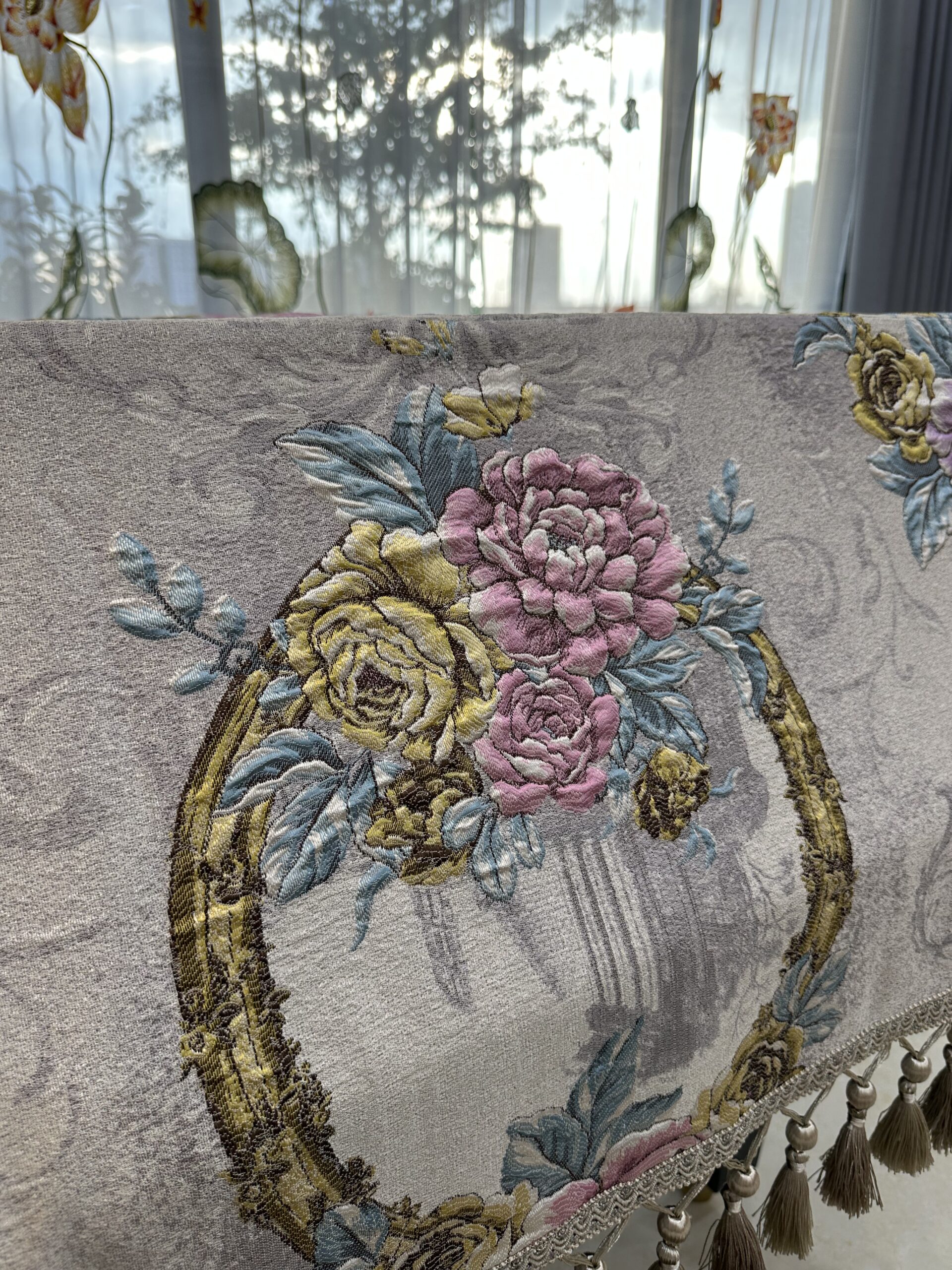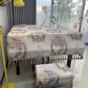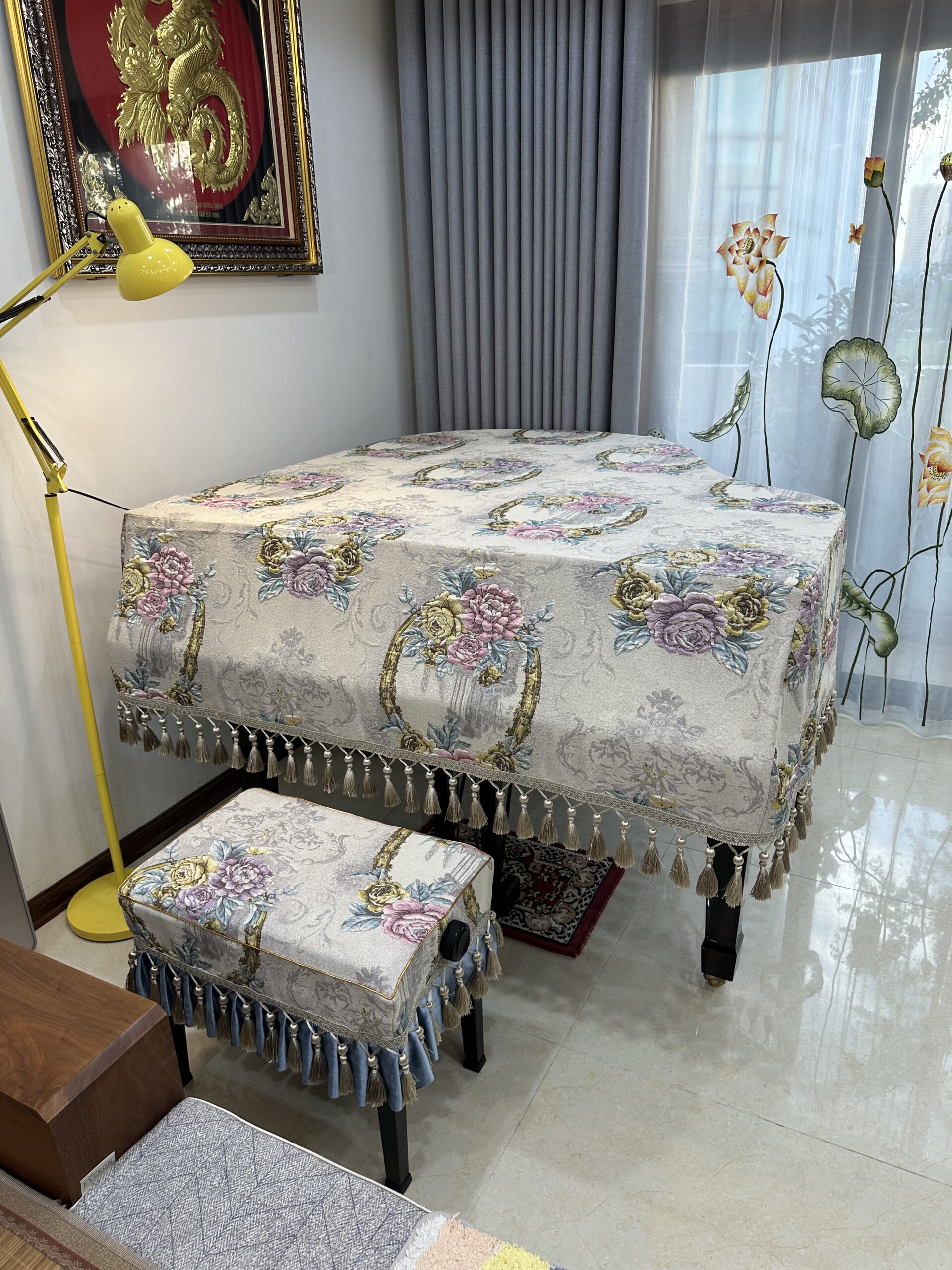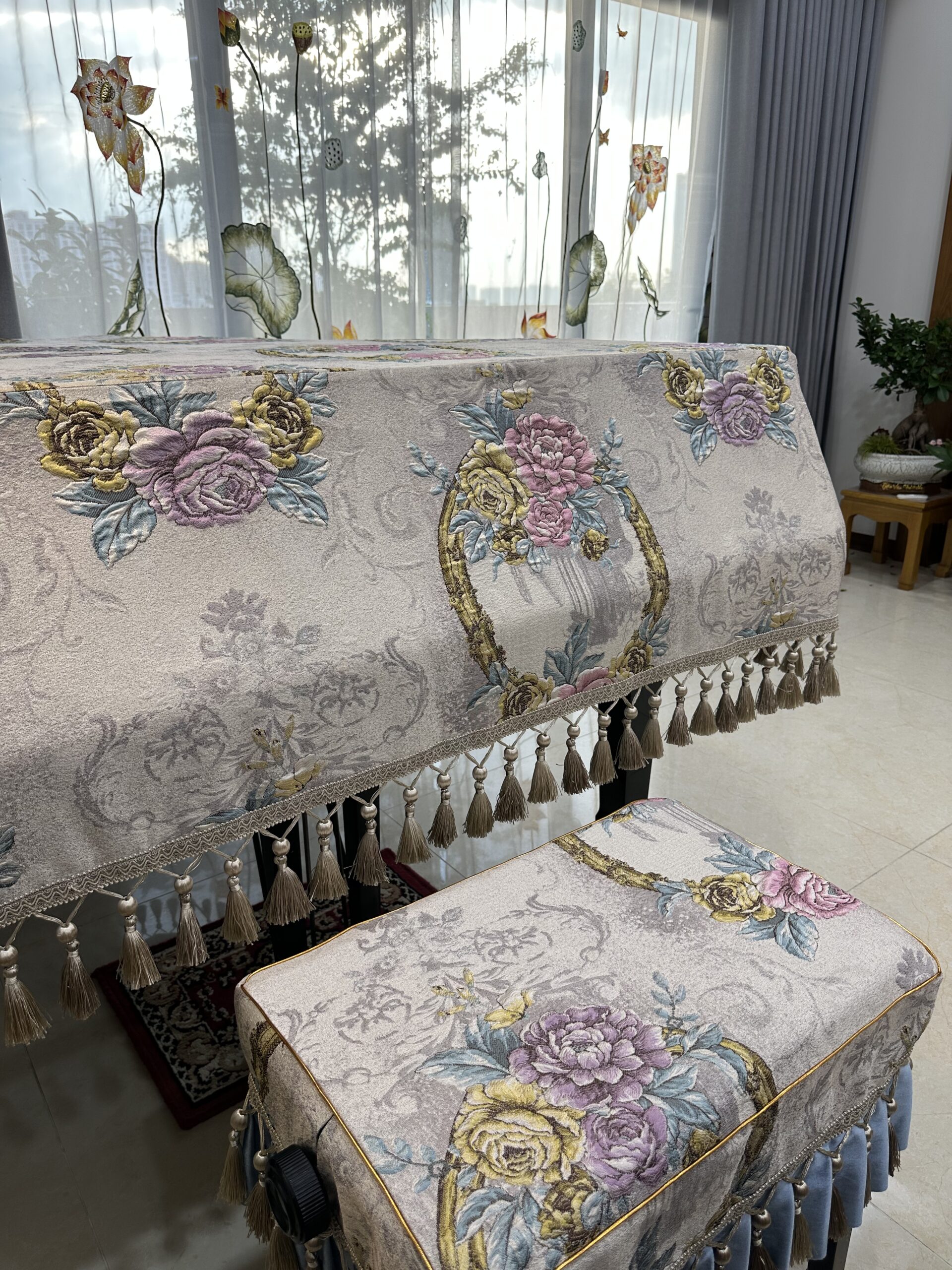 BỘ KHĂN PHỦ ĐÀN GRAND PIANO CHẤT VẢI GẤM HỒNG THÊU 3D