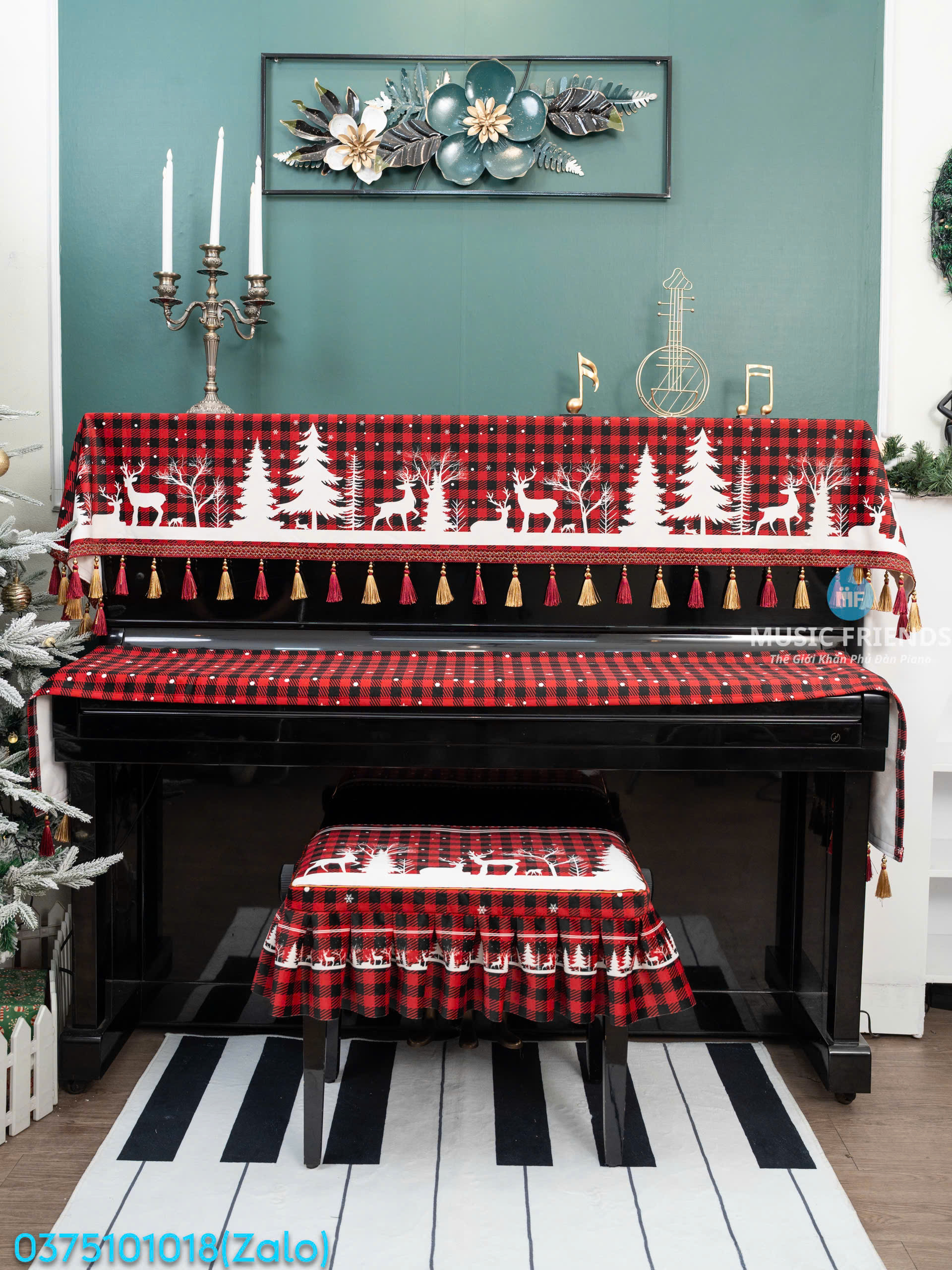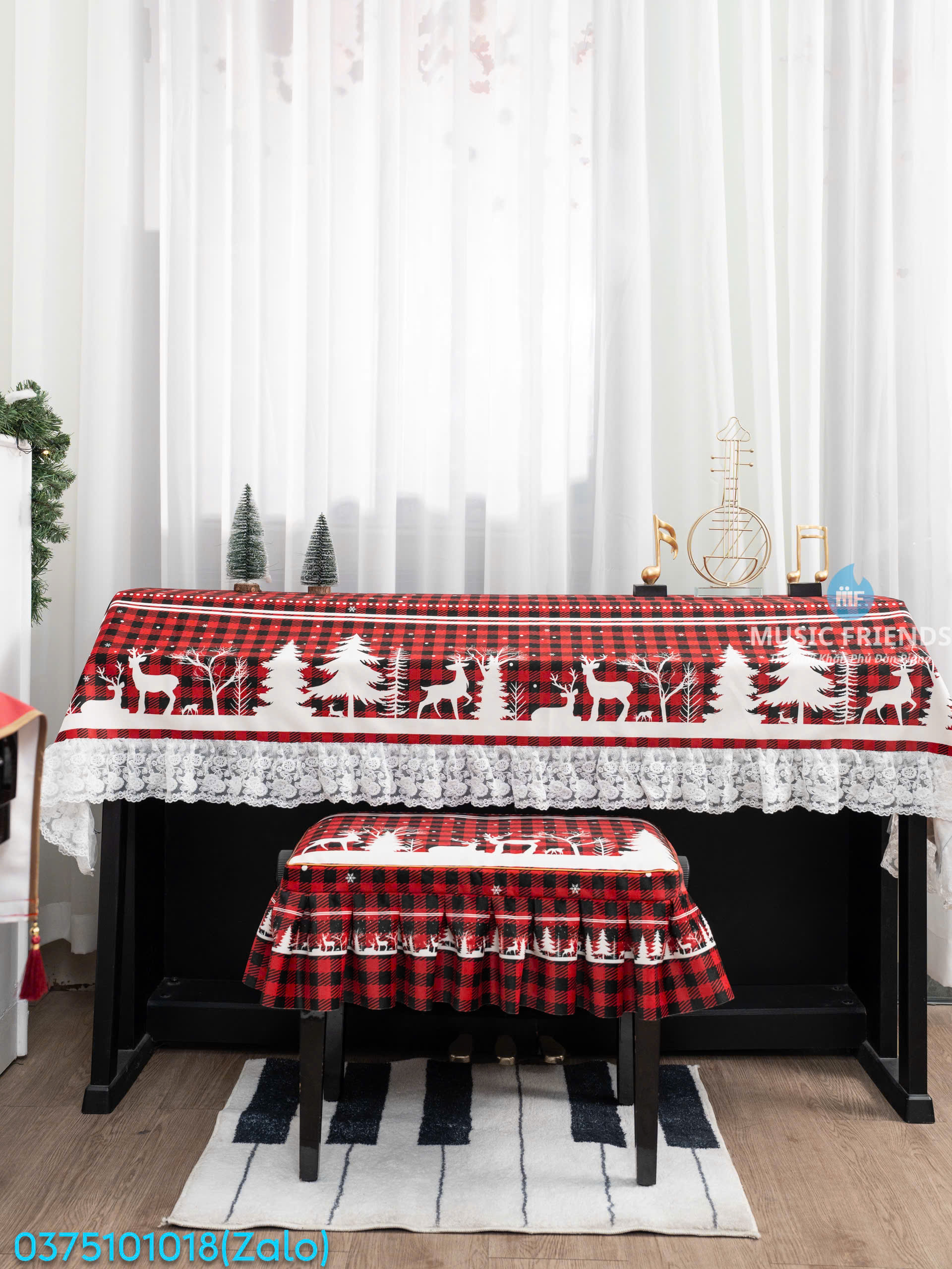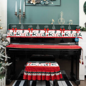 Bộ 3 Món Khăn Phủ Đàn Họa Tiết Nơ Xinh Giáng Sinh– Vải Nhung Mịn Dày Cao Cấp