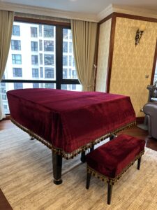 KHĂN PHỦ ĐÀN GRAND PIANO CHẤT VẢI NHUNG ĐỎ RƯỢU CAO CẤP