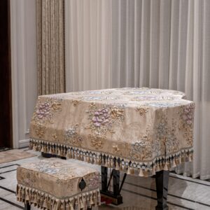 Khăn phủ đàn Grand Piano cao cấp – Vải gấm lụa thêu hoa văn 3D phong cách Tân cổ điển