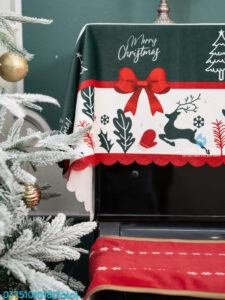Bạn dễ dàng kết hợp khăn phủ với các món trang trí khác như cây thông, vòng nguyệt quế hay đèn led để tạo nên một không gian Giáng Sinh trọn vẹn.