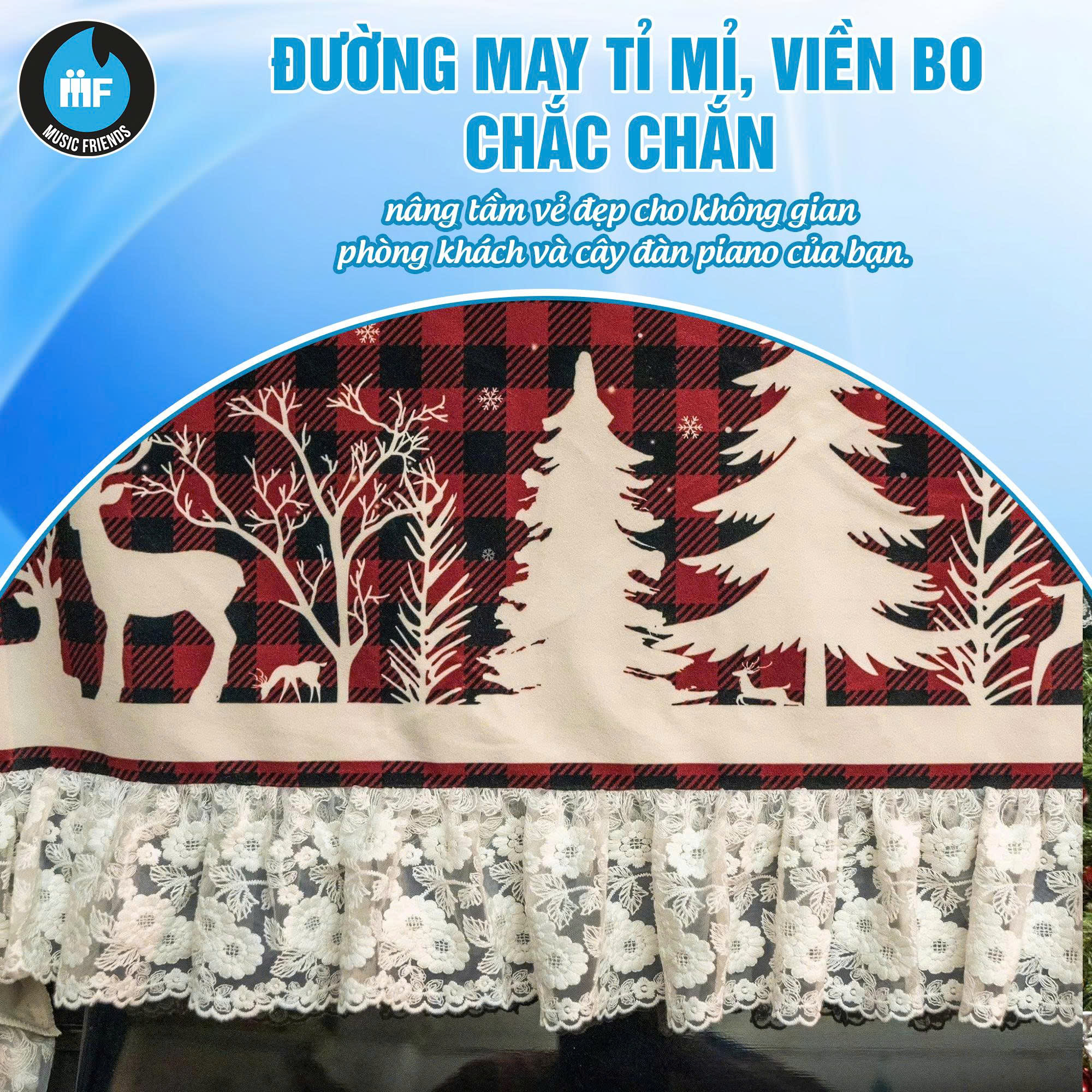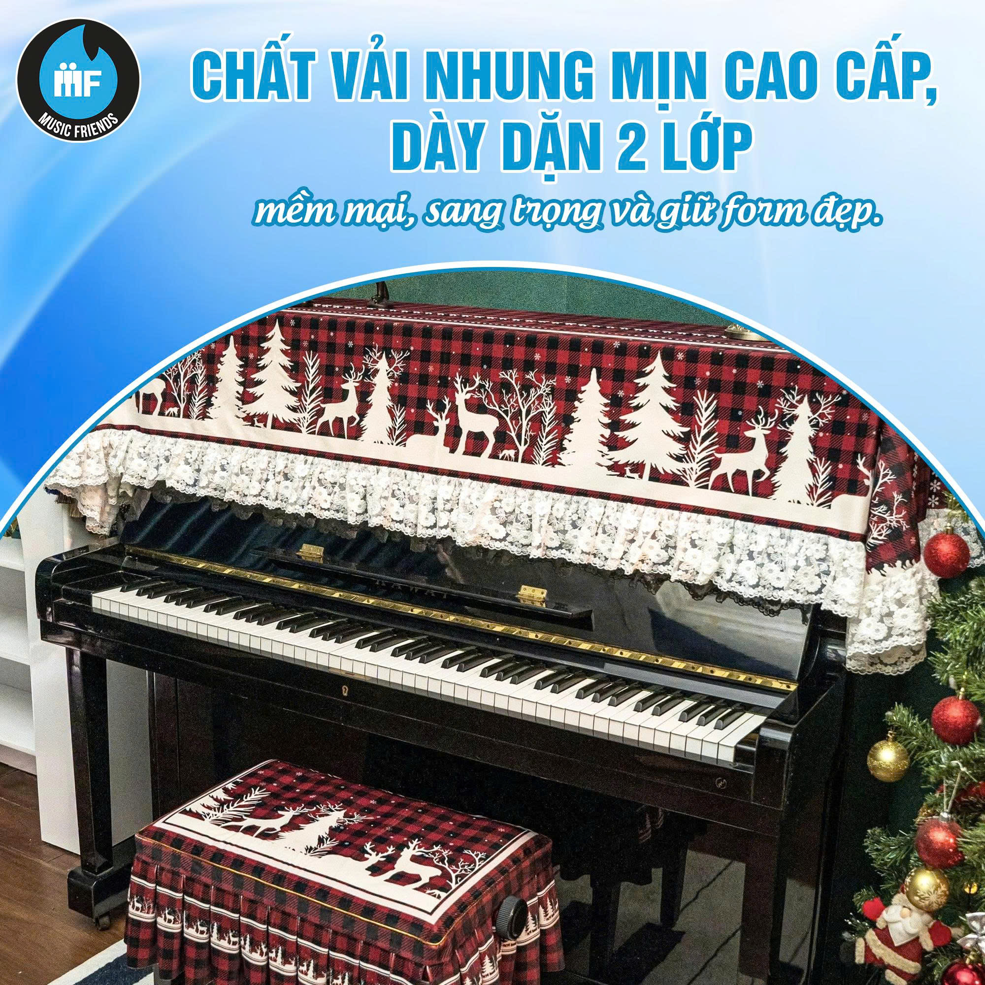 Nếu bạn đang tìm kiếm một phụ kiện vừa thẩm mỹ, vừa hữu dụng để làm mới không gian sống trong mùa Giáng Sinh, khăn phủ đàn piano chính là gợi ý lý tưởng. Không chỉ giúp bảo vệ cây đàn – tài sản và niềm đam mê của bạn – mà còn thể hiện gu thẩm mỹ tinh tế, sang trọng và đầy cảm xúc.