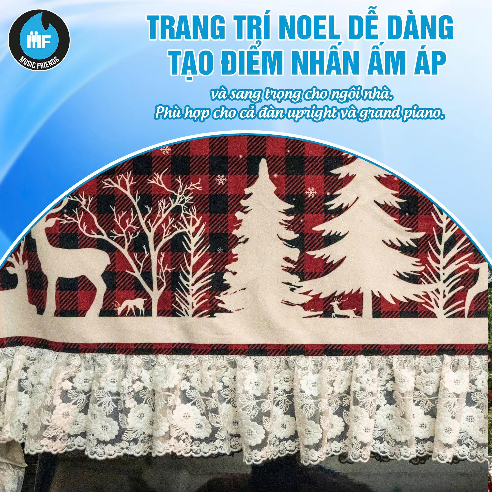 Mùa Giáng Sinh đang đến gần, mang theo không khí rộn ràng và ấm áp len lỏi khắp mọi ngôi nhà. Đây cũng là thời điểm lý tưởng để bạn “khoác áo mới” cho không gian sống của mình. Nếu cây đàn piano là tâm điểm trong căn phòng, thì khăn phủ đàn Giáng Sinh chính là lựa chọn hoàn hảo để tạo nên một điểm nhấn tinh tế, sang trọng và tràn đầy cảm xúc mùa lễ hội.